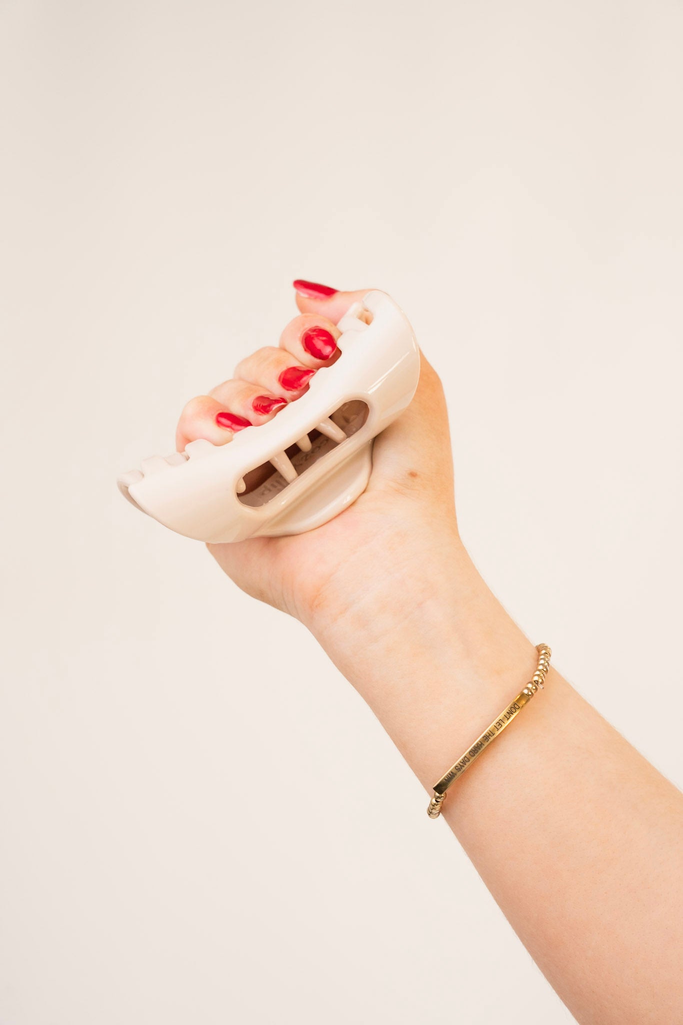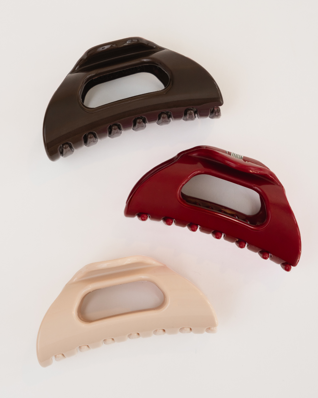 Meet the Cozy Clip®, the claw clip redesigned for your comfort! Made of flexible material, the Cozy Clip® is the ultimate upgrade for maximum comfort while driving, lounging, working out, and more. You'll never have to worry about your claw clip breaking or creasing your hair again!
