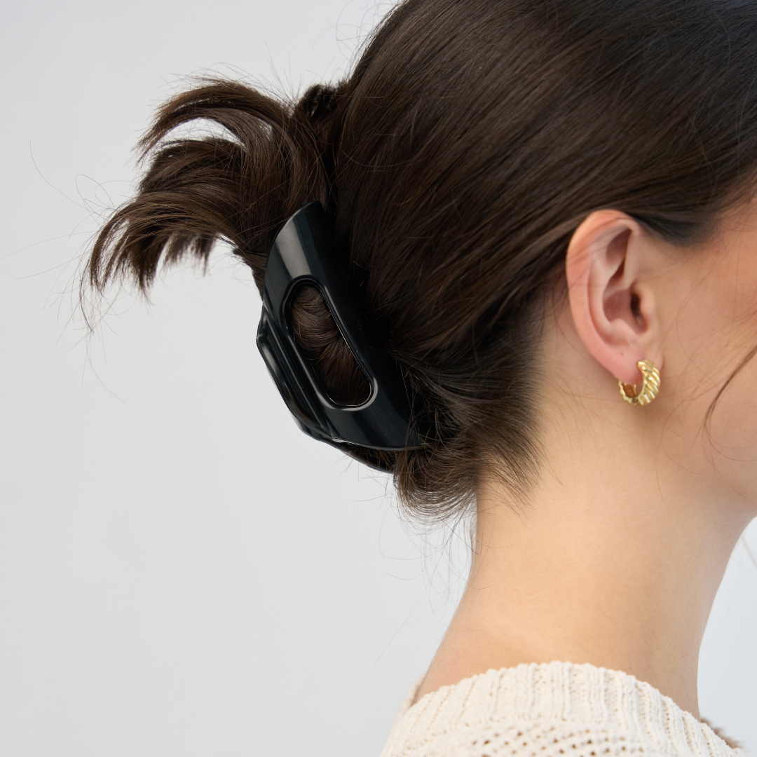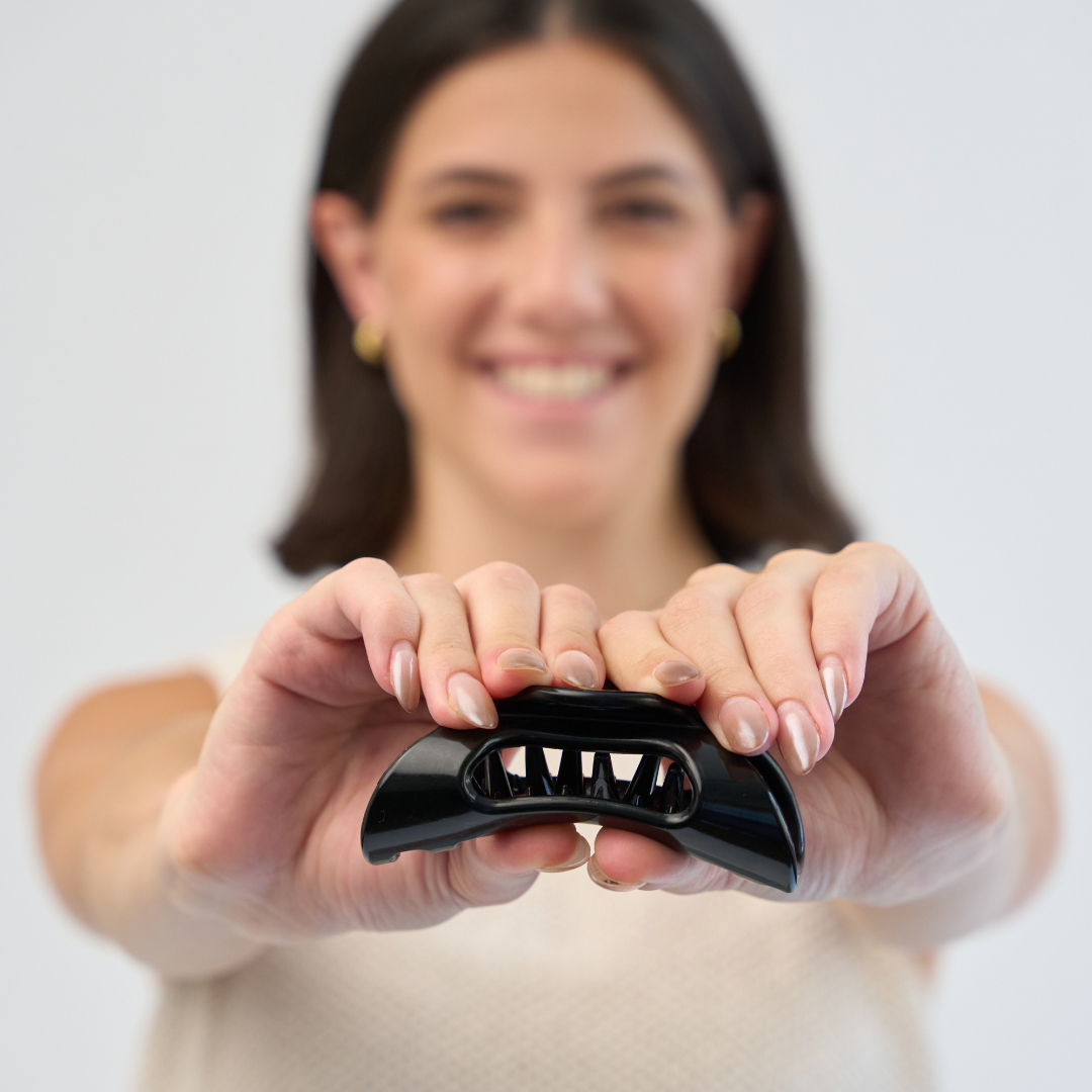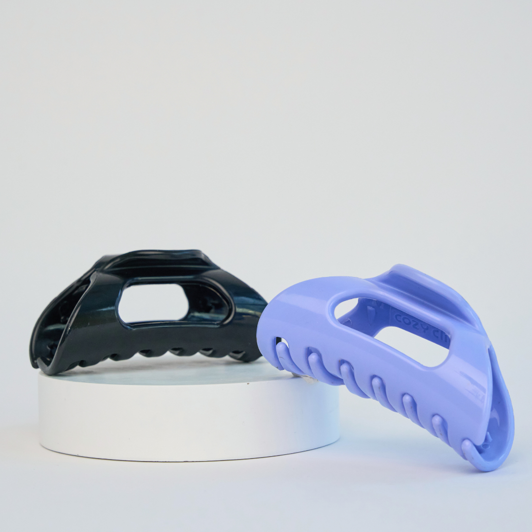 Meet the Cozy Clip®, the claw clip redesigned for your comfort! Made of flexible material, the Cozy Clip® is the ultimate upgrade for maximum comfort while driving, lounging, working out, and more. You'll never have to worry about your claw clip breaking or creasing your hair again!